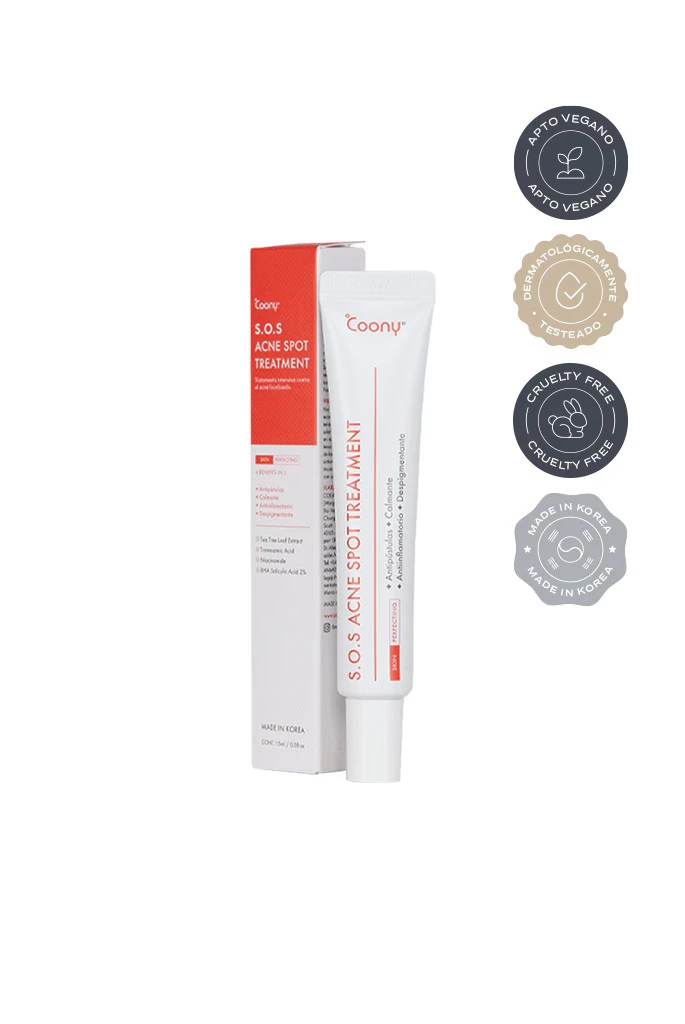 El S.O.S Acne Spot Treatment de Coony es tu aliado para emergencias de acné. Diseñado para actuar de manera rápida y efectiva sobre los brotes localizados, su fórmula incluye ácido salicílico y ácido tranexámico para calmar enrojecimientos, reducir imperfecciones y prevenir manchas post-acné.