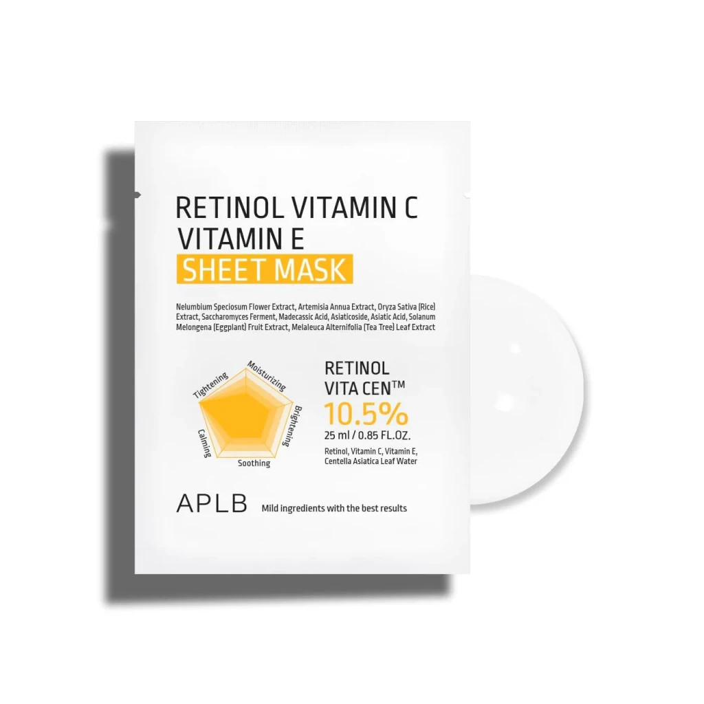 - Una mascarilla facial que contiene retinol, vitamina C y vitamina E para revitalizar la piel apagada.